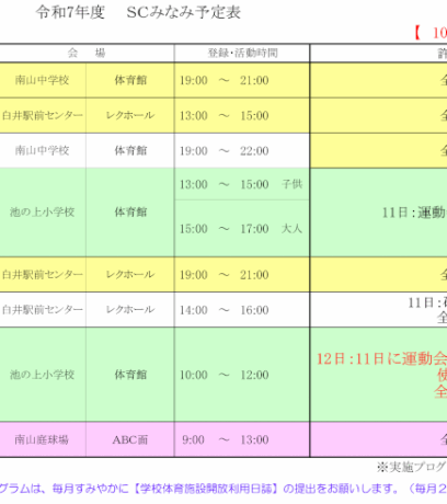 令和7年10月スケジュール